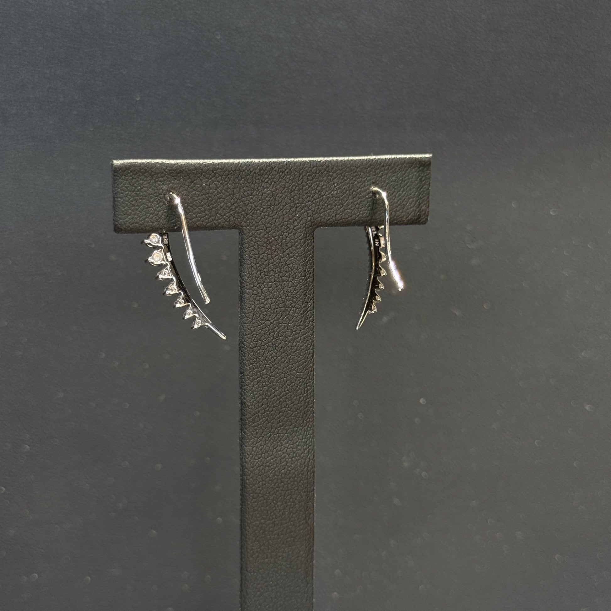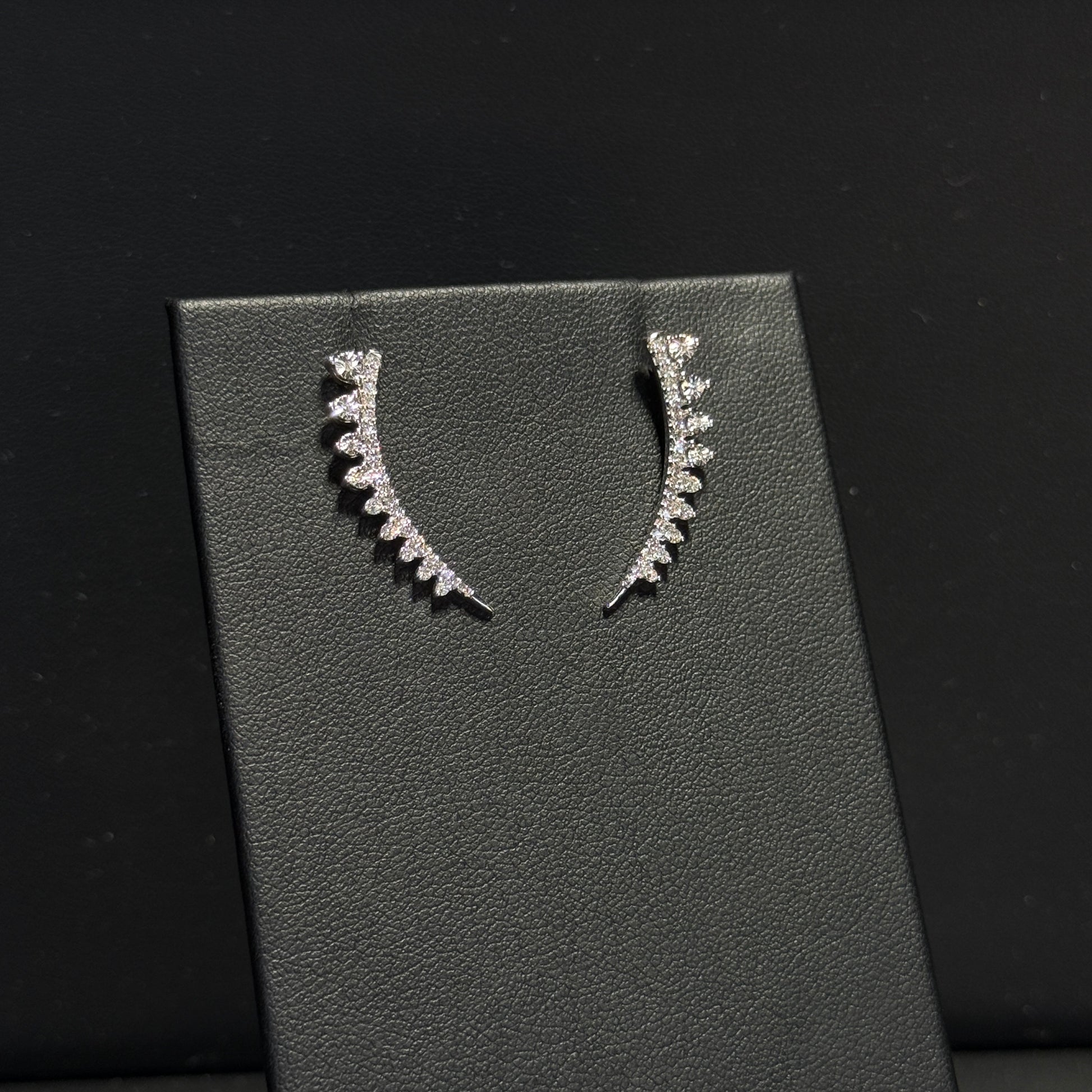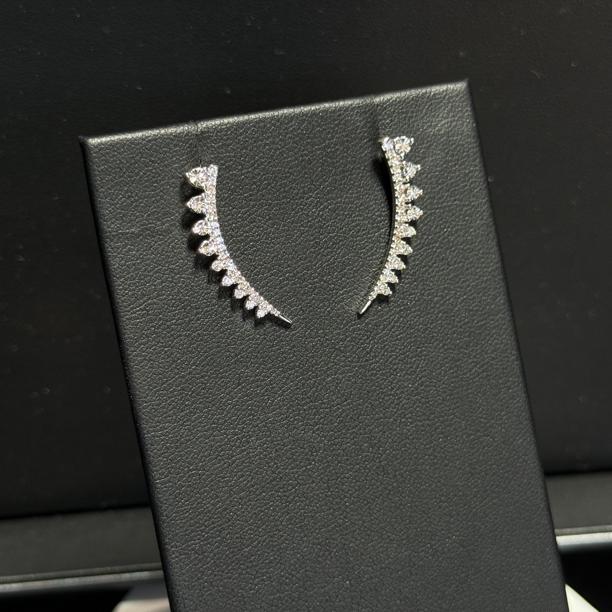 These 10K white gold earrings feature .154 carats total weight of sparkling diamonds in a sleek, curved design. Lightweight at 2.4 grams, they add the perfect amount of modern shine.