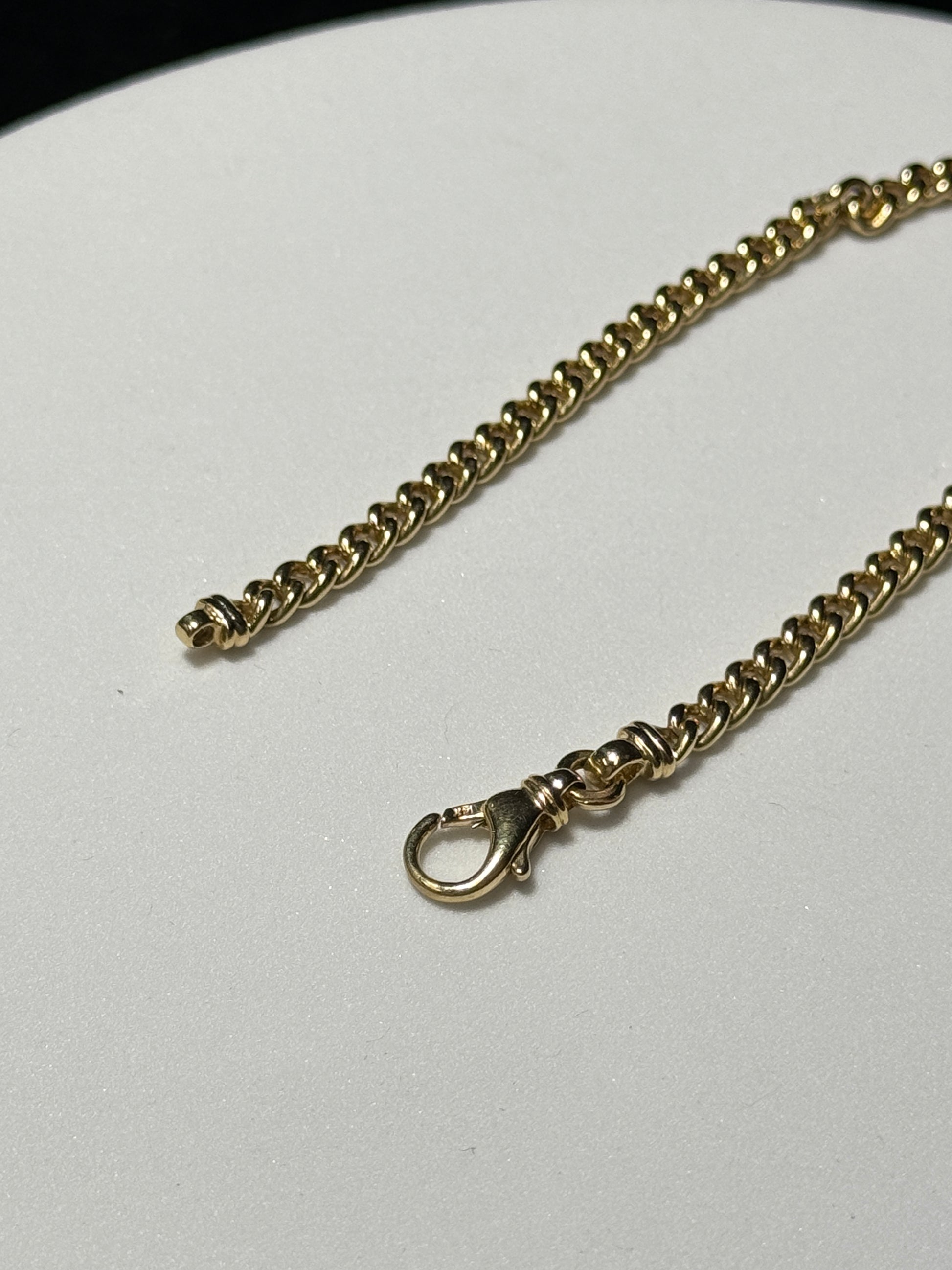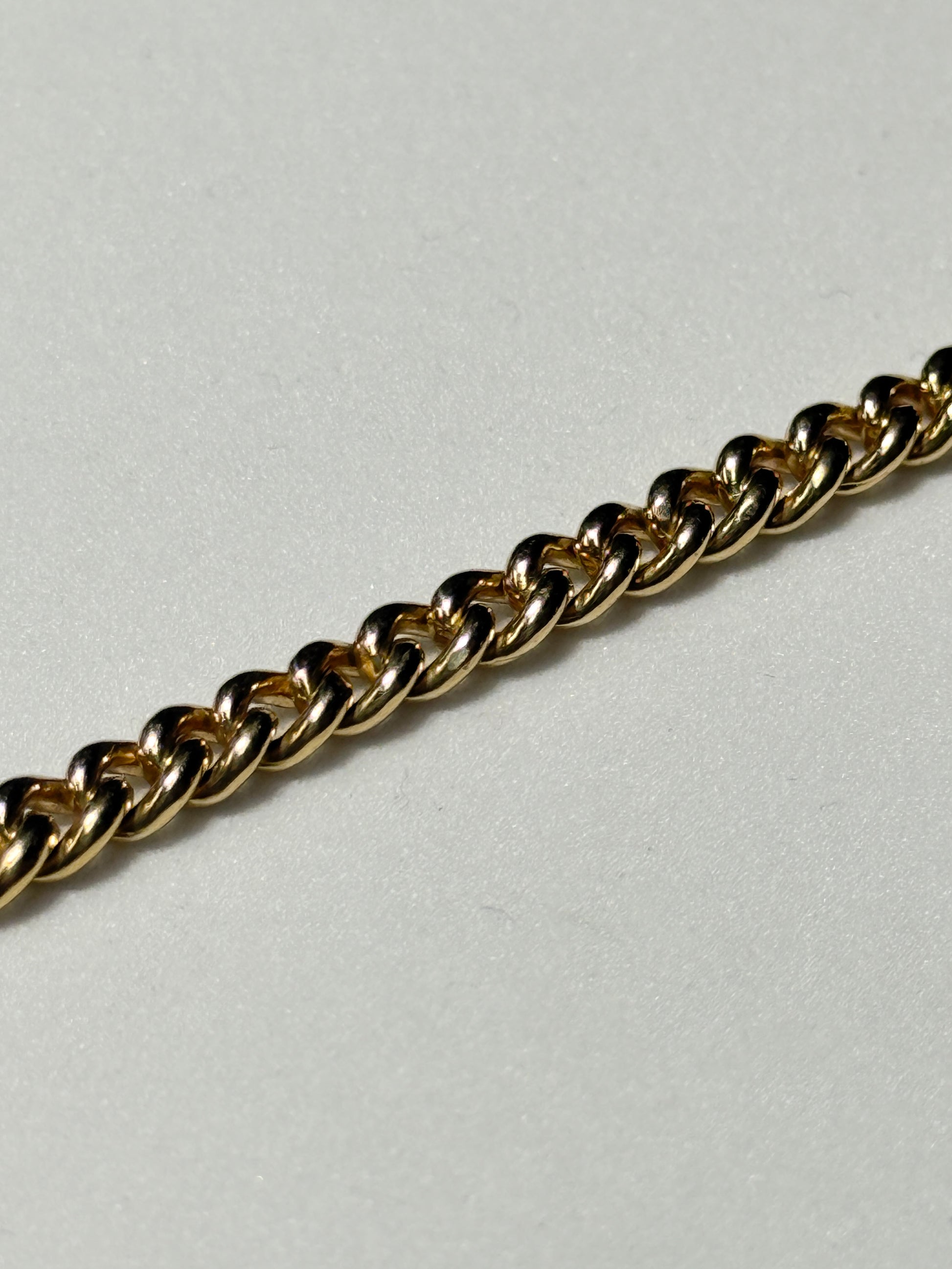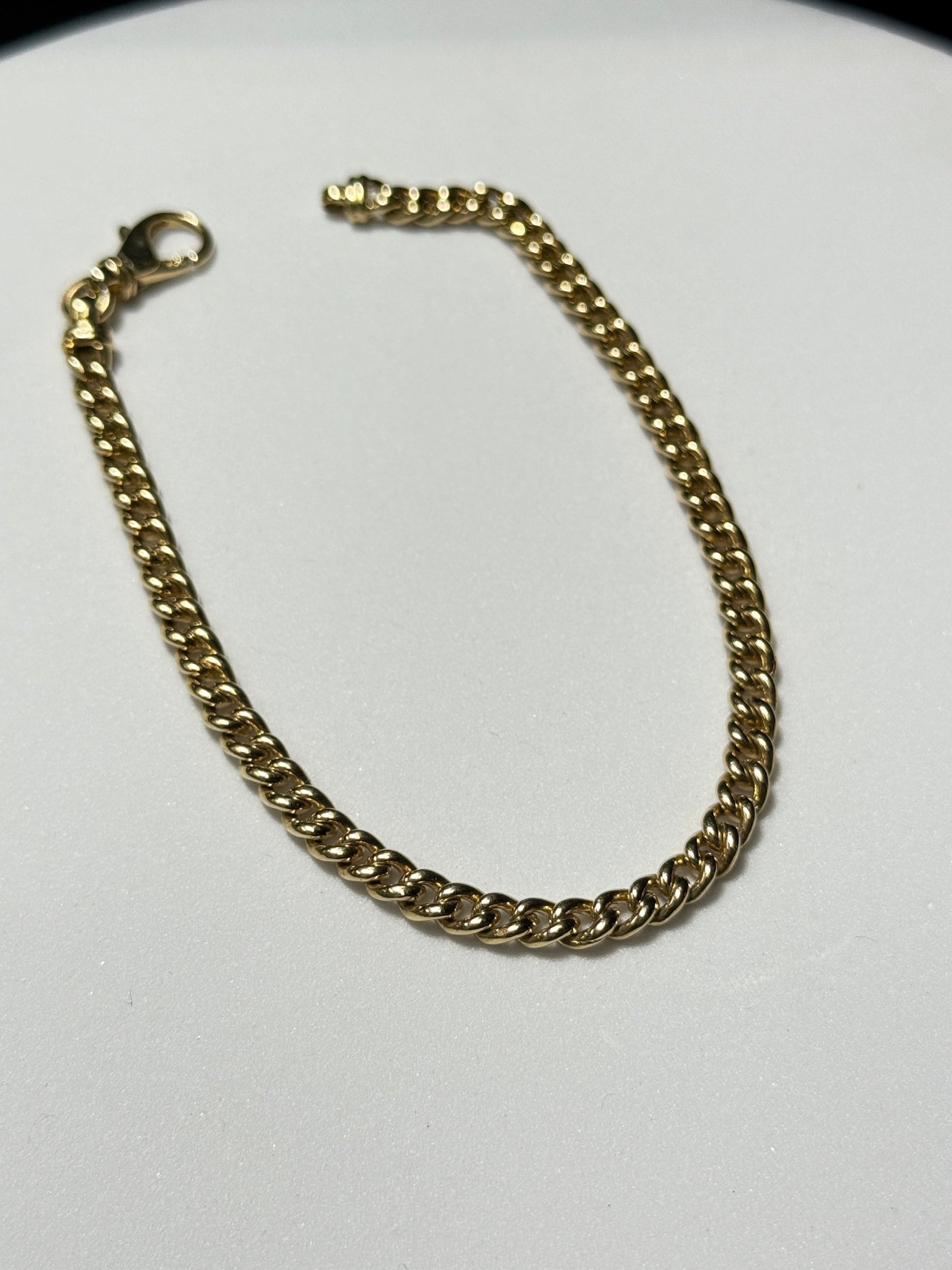 This 14K yellow gold curb bracelet measures 8.5 inches in length, 4.5mm wide, and weighs 16 grams. Durable, timeless, and made to wear every day.