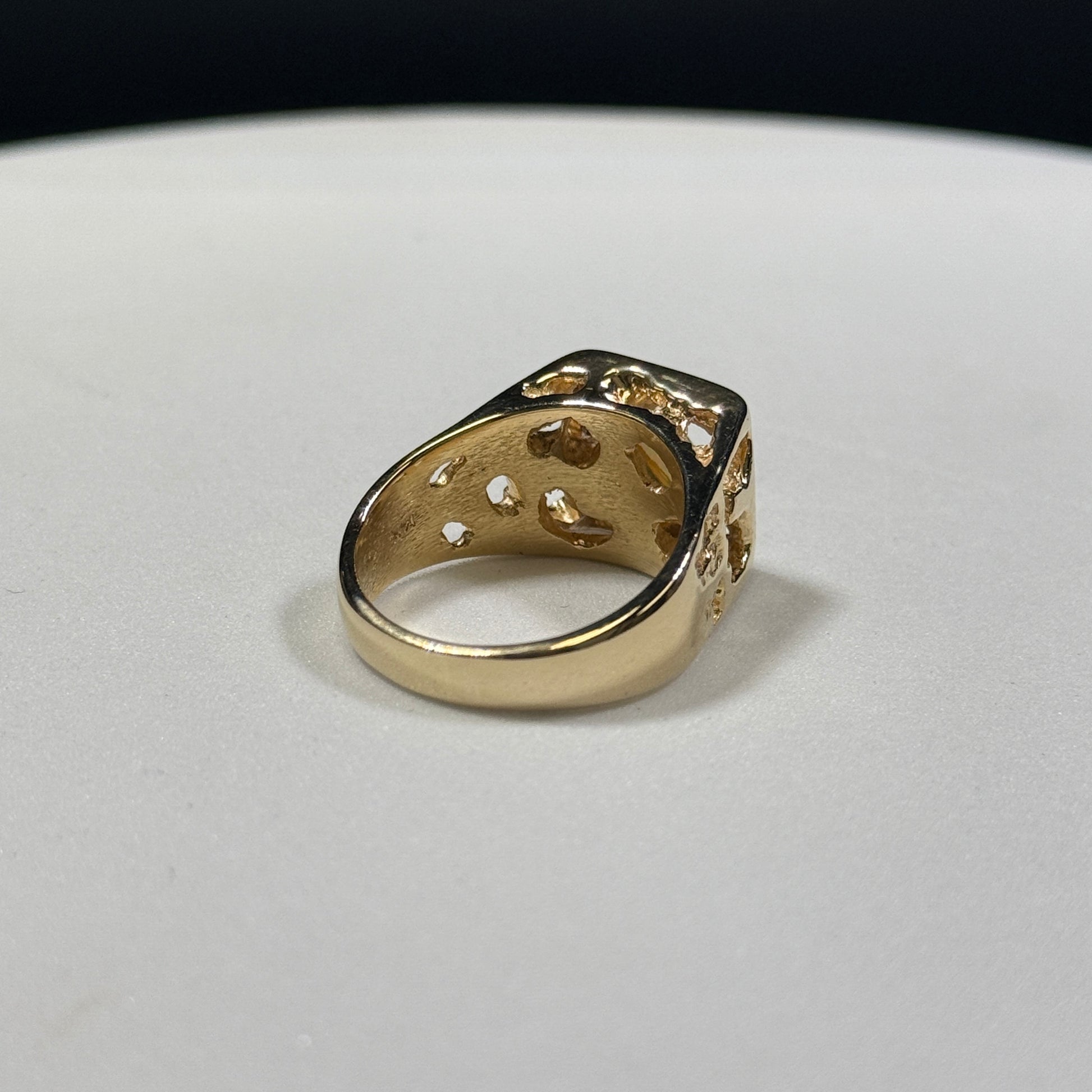 - Finish: High polish with textured nugget accents