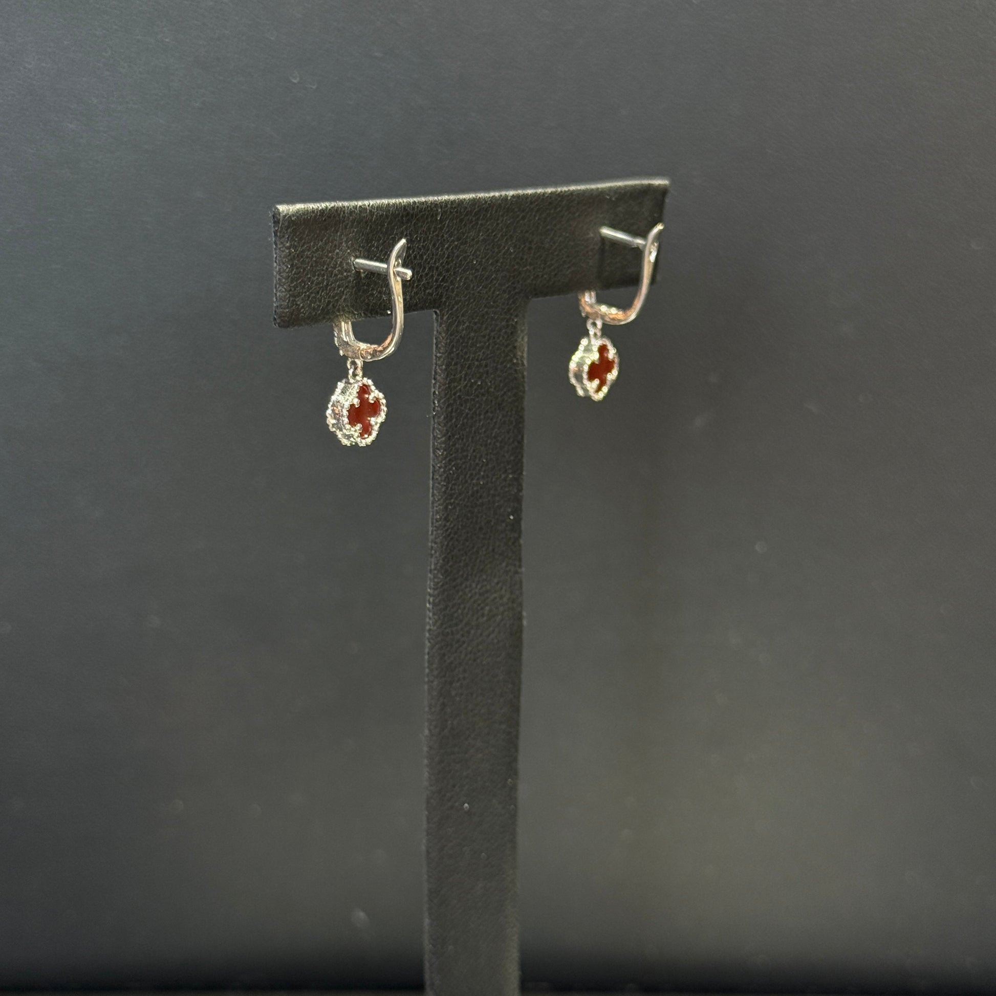 Chic and playful, these 18K white gold earrings feature a bold red clover flower design. Lightweight at 1.8 grams, they add a touch of color and elegance to any look.